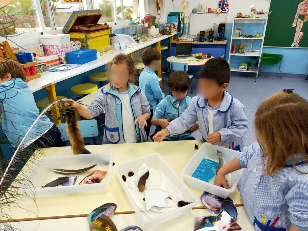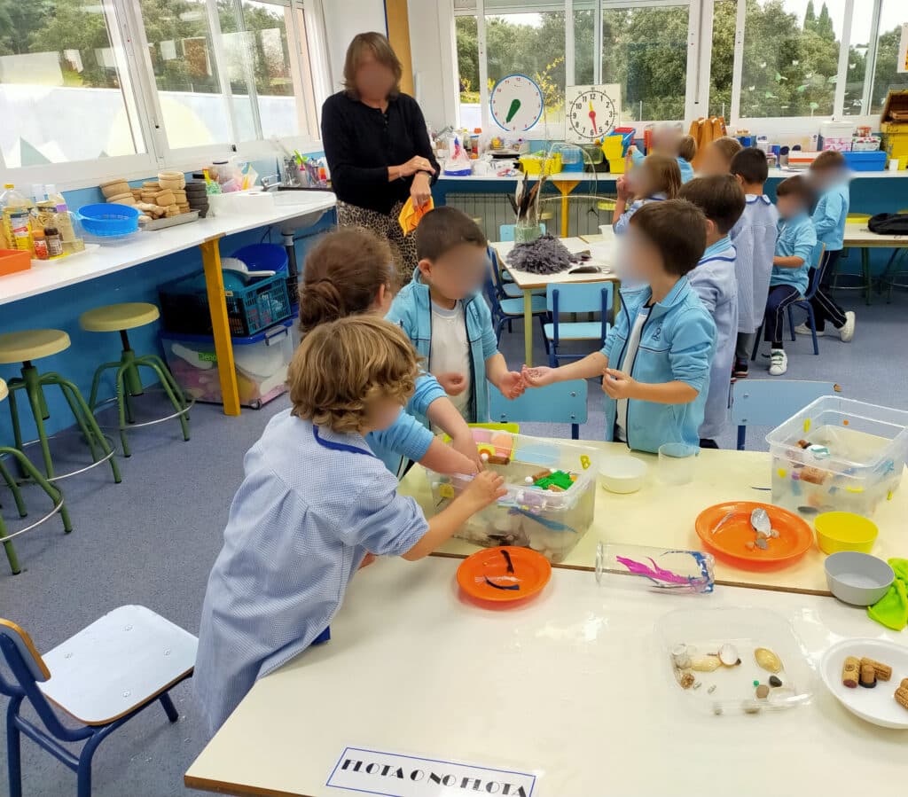 En Pequeciencia (aula de 3 años) y en las experiencias del laboratorio, el alumnado observa, experimenta y se inicia en el conocimiento del entorno de forma vivencial, acudiendo una vez a la semana.